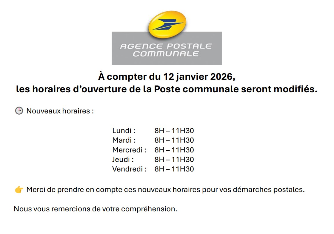 Modification des horaires d'ouverture de l'agence Postale de Châtillon